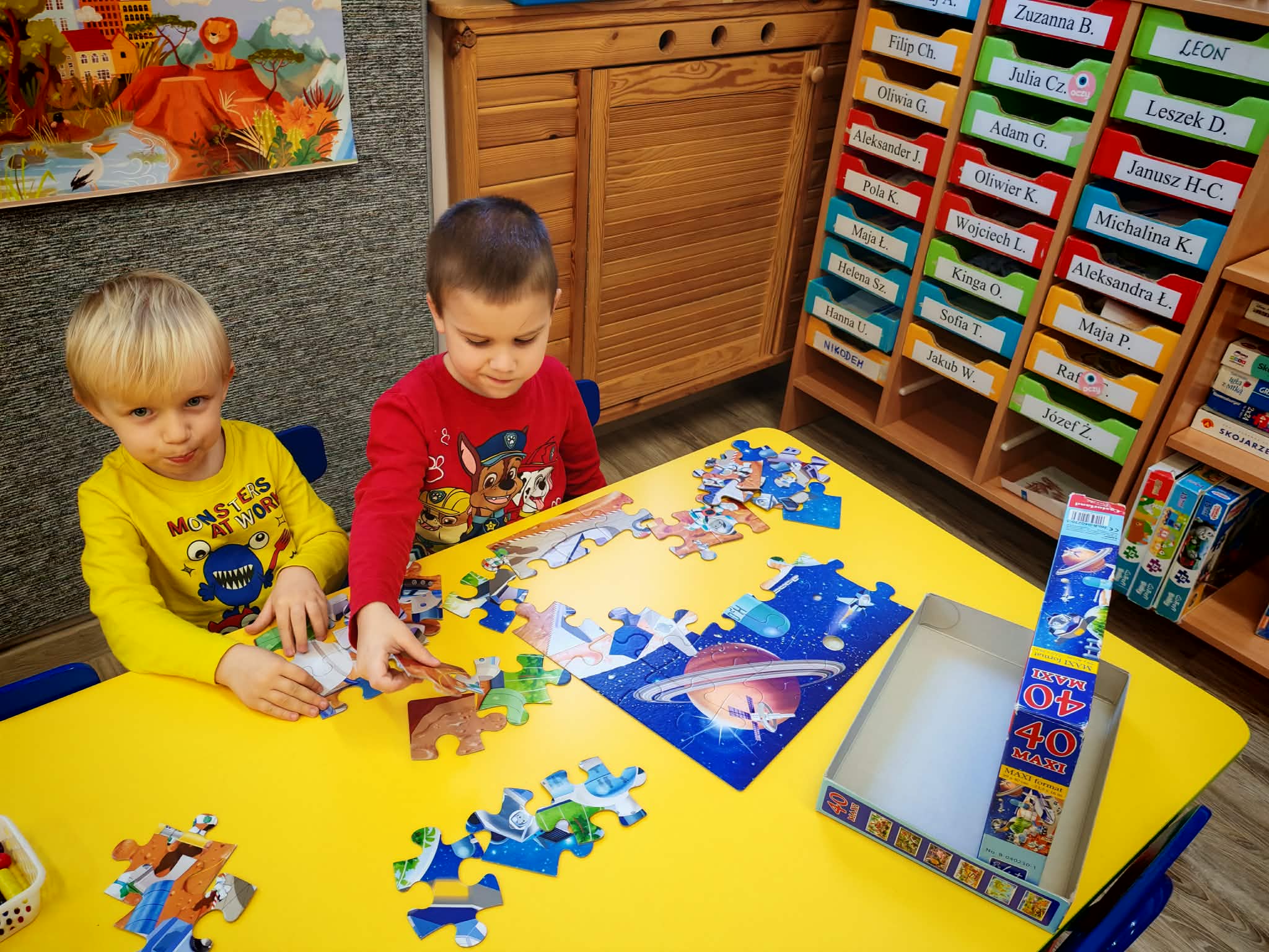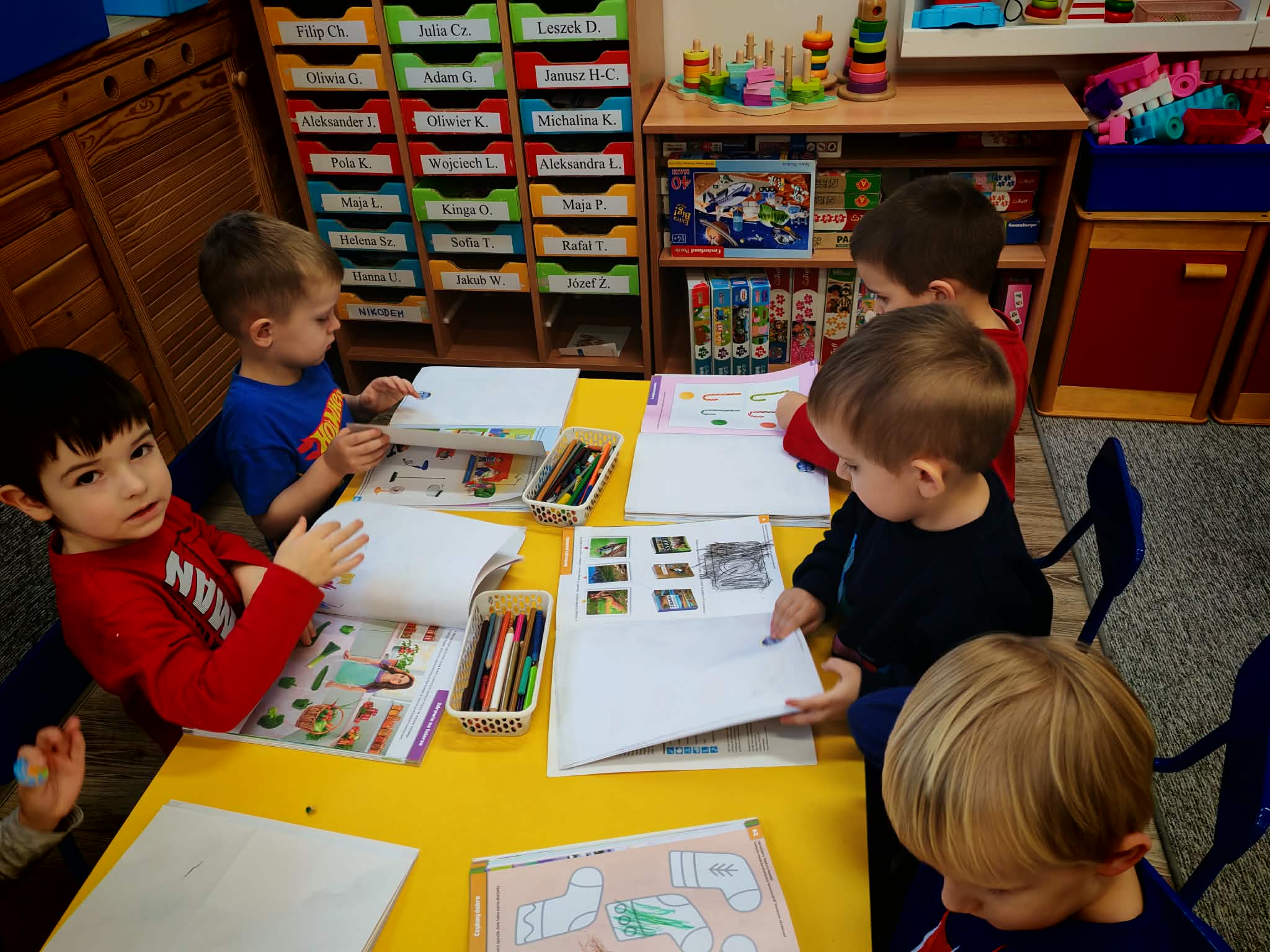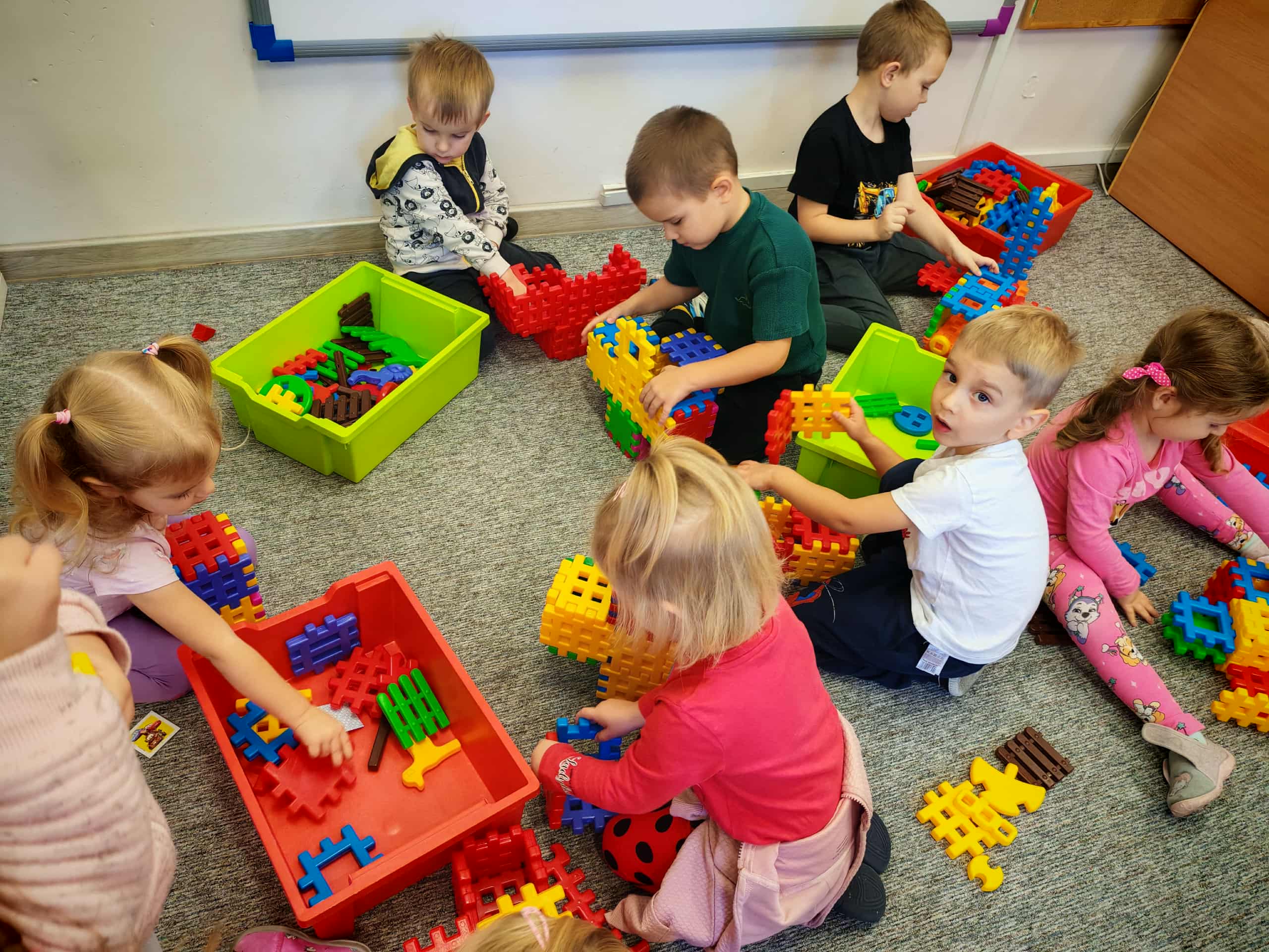 Co słychać w grupie-zdjęcia przedstawiające zabawy dzieci z grupy mrówek w różnych sytuacjach