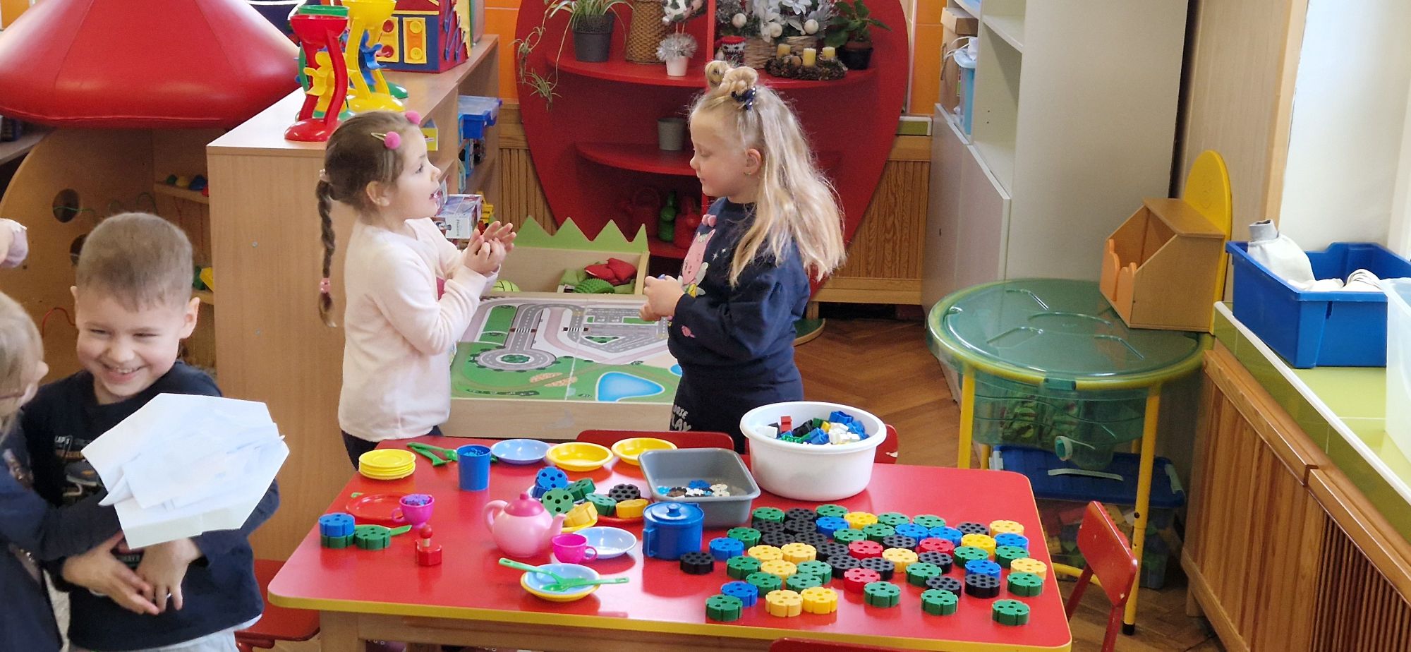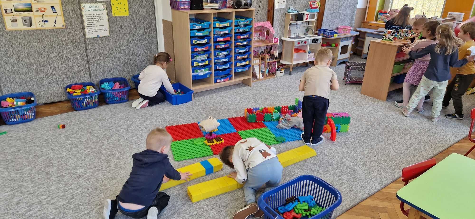 Co słychać w grupie-zdjęcia przedstawiające zabawy dzieci z grupy pszczółek w różnych sytuacjach
